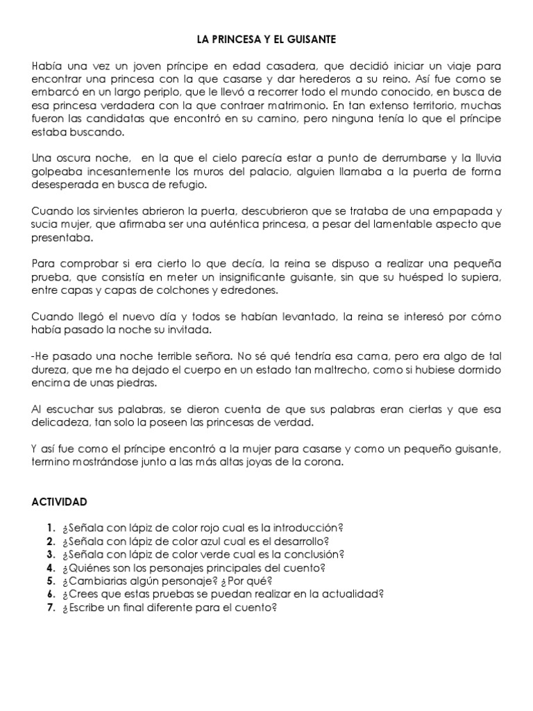 La Princesa Y El Guisante Pdf Verdad Ocio