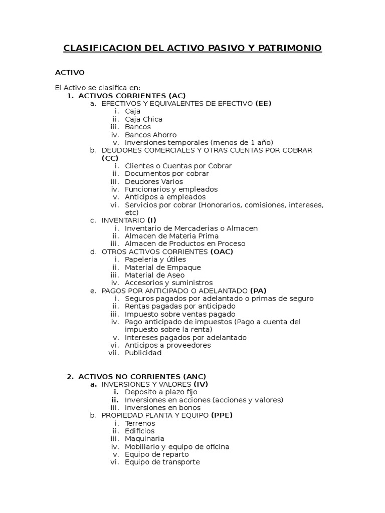 Clasificacion Del Activo Pasivo Y Patrimonio Pdf Bancos Contabilidad