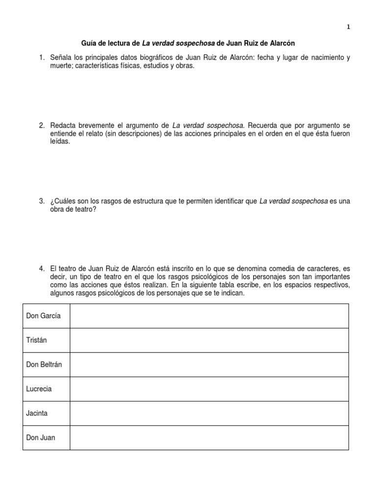 Sin duda la comedia moralista de enredos más célebre de Juan Ruiz de Alarcón Taxco 1580 o 1581-Madrid 1639 es La verdad sospechosa escrita entre 1618 y. A mitad de la obra alguien empezó a roncar. 1620 ANÁLISIS 1 Resumen Acto I García es heredero de Beltrán hombre rico que perdió a su hijo primogénito.