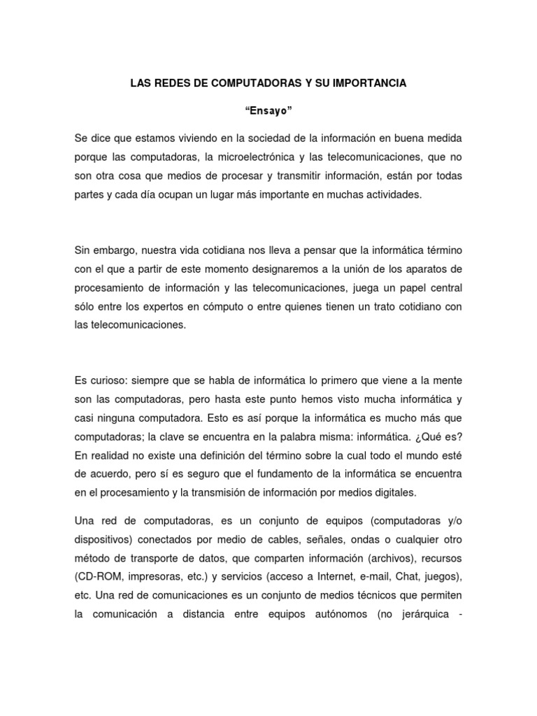 Ensayo Las Redes De Computadoras Y Su Importancia Pdf Inalambrico Red De Computadoras